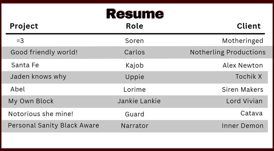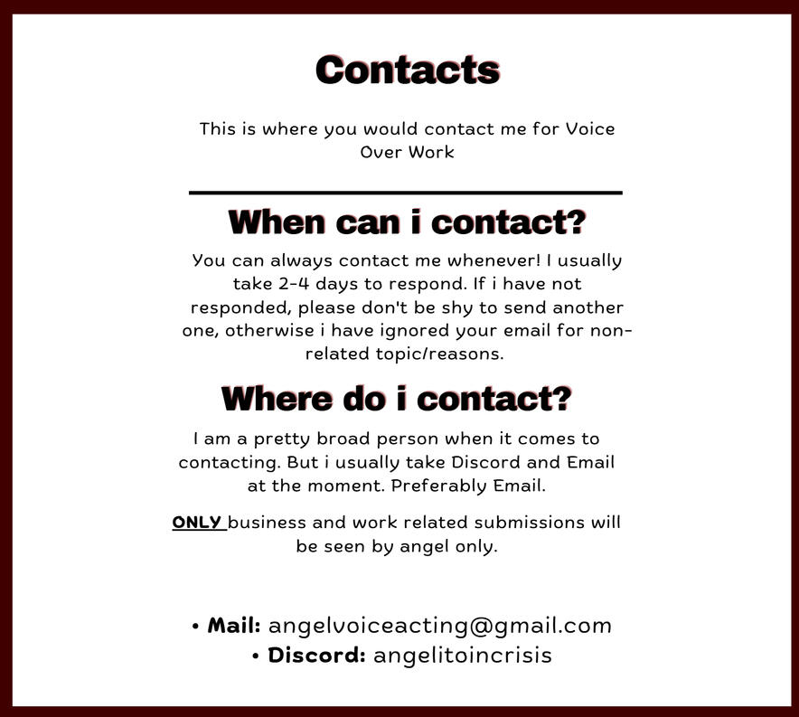 At a young age, Angel has always loved acting and imagining things from the heart.Getting into Voice Acting, he has lended his voices for many clients in different medias as Series, Video Games, Audio Dramas, and more!
